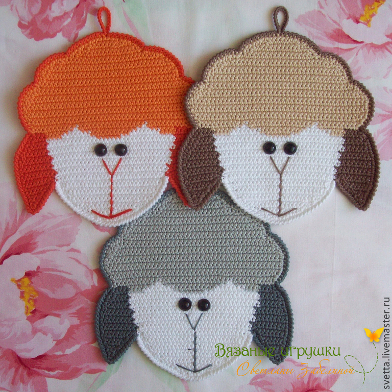 Предлагаю Вашему вниманию сборник мастер-классов по вязанию крючком прихваток и закладок в виде овечек.
